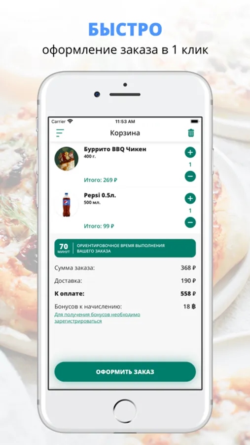 Скачивайте наше приложение, оформляйте заказ и наслаждайтесь любимой едой, где бы Вы ни были! Приятного аппетита!