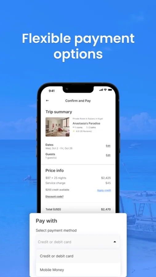 Bongalo connects travelers to thousands of furnished, affordable accommodations across Africa. Pay seamlessly with your credit card from any part of the world or with mobile wallet in 19+ African countries.