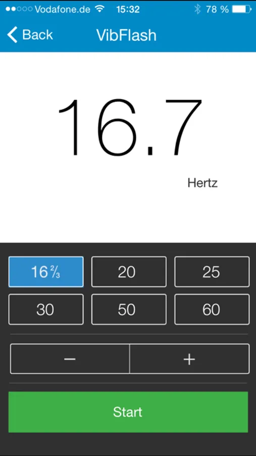 - VibFlash: The flash light of your iPhone is used to generate a stroboscopic light with adjustable frequency.