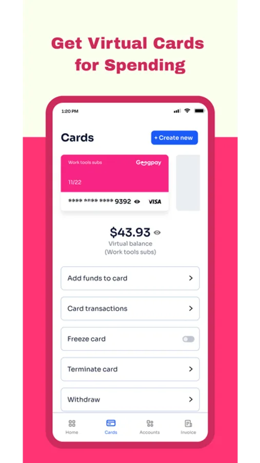 - Set spending limits, and terminate or freeze your card without stress. Employers can also assign a card to each team