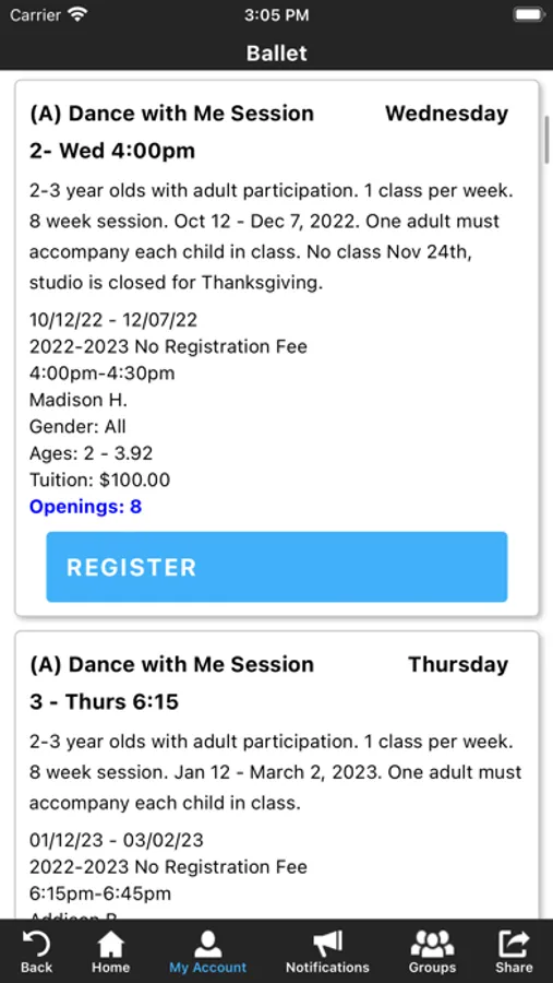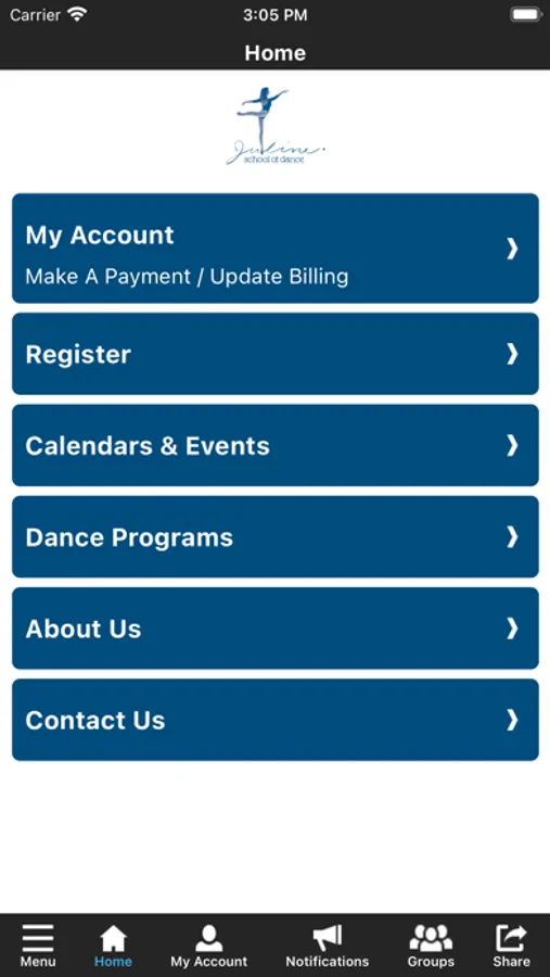 The Juline School of Dance app allows you to manage your account with ease, register for classes and special events. You'll also receive important notifications about class changes, closings, registration openings, special announcements, and upcoming events.