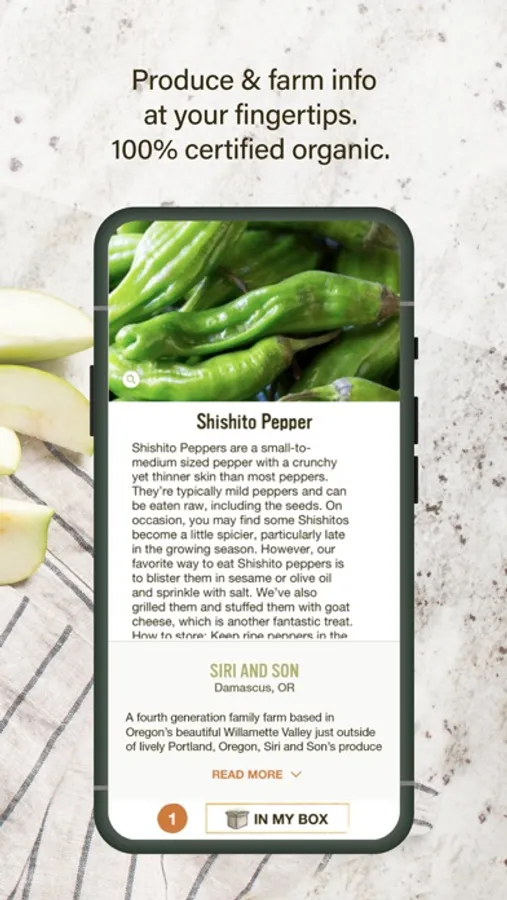• Access a more transparent food system—easily view information about our partner farms & food producers