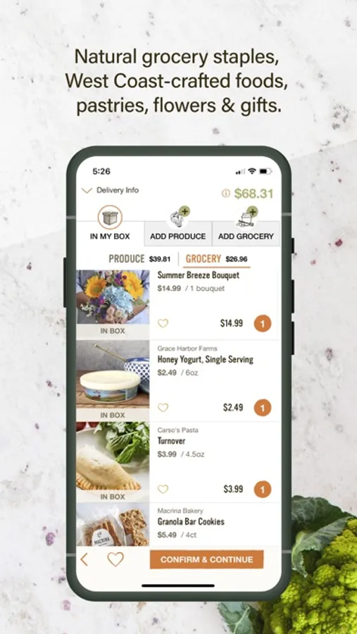 • Quickly customize each farm box delivery with your favorite seasonal, organic produce—over 75 varieties of produce grown on sustainable farms we know and trust along the west coast.