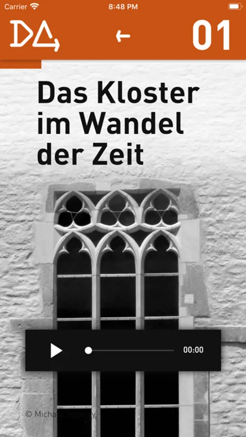 In 18 Stationen führt die App Reisen durch Raum und Zeit interaktiv über das Außengelände und durch Innenräume. Der Weg kann frei gewählt werden. Jede Station erzählt eine abgeschlossene Geschichte. Ein Audioclip, bzw. Film führt in das jeweilige Thema ein, es folgen multimediale Vertiefungsebenen mit 3-D-Rekonstruktionen, Rundflügen, Filmen, Bildern, Quellen und Texten. Vor Ort wird die Geschichte besonders erlebbar, doch die App macht auch einen virtuellen Besuch von zu Hause oder unterwegs möglich.