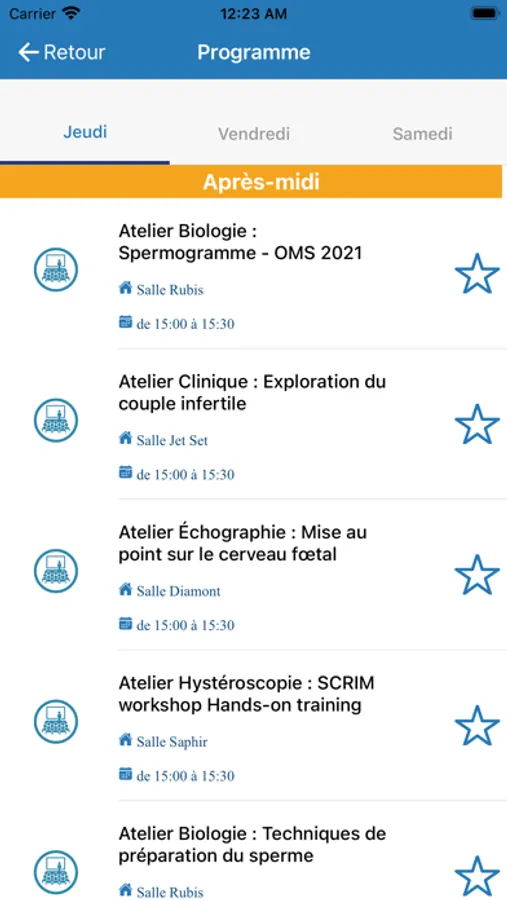 Programme : Accès facile et instantané à toutes les informations concernant chaque session.