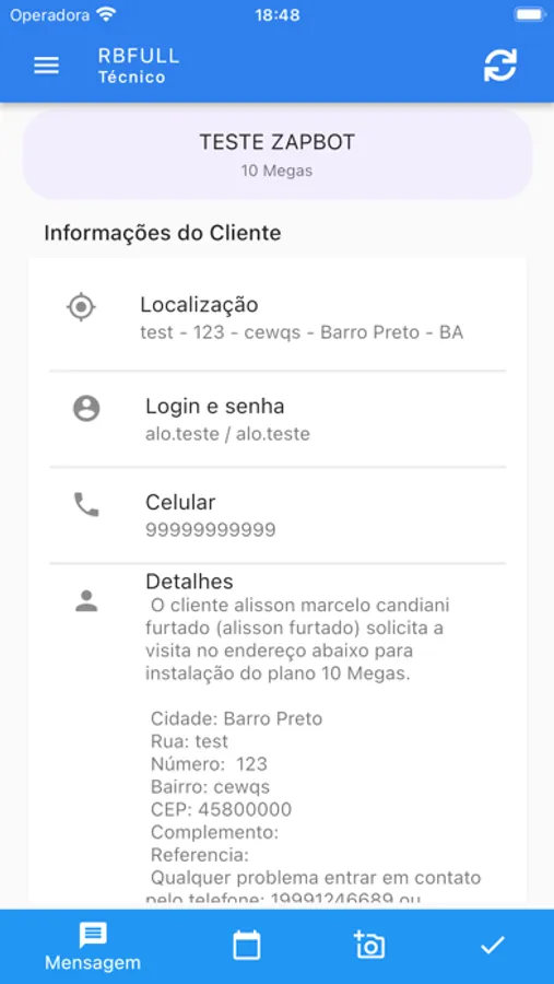 APP para que o técnico do provedor que utiliza o sistema RBFULL, possa receber digitalmente as ordens de serviços de chamados e de instalações.