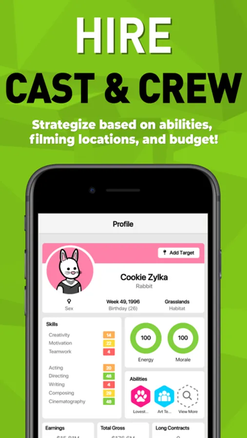 Create your own scripts, or buy existing scripts off the market, then cast and negotiate cast contracts. Set opportune release dates and run marketing campaigns, for the best possible opening weekend.
