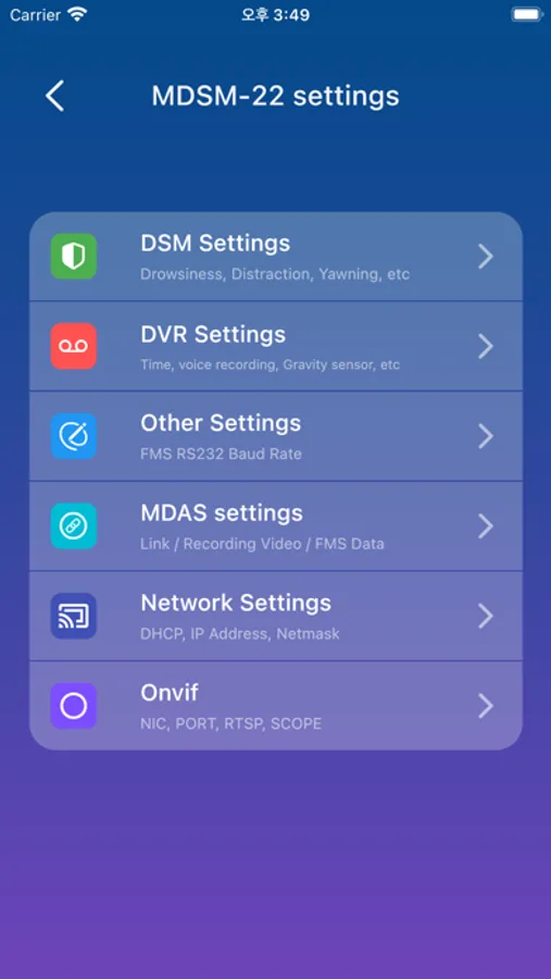 This Movon AI APP. offers calibration&settings, video downloads & play, driver behavior score , product demonstration with live video,