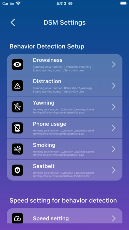 fuctions : Drowsiness Alert, Distraction Alert