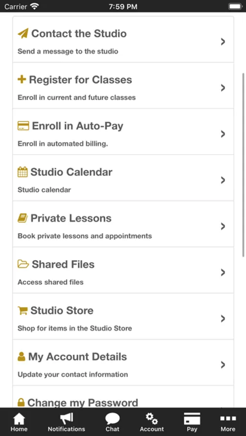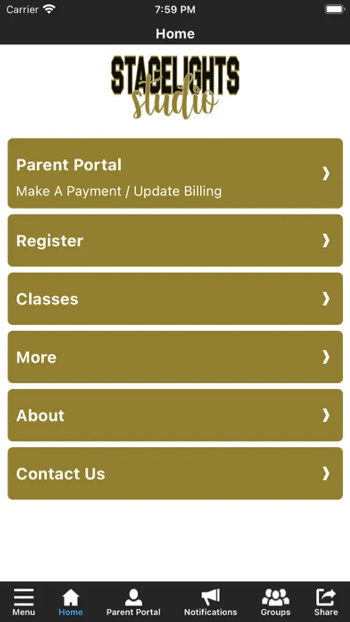 The Stagelights Studio app allows you to manage your account with ease, stay up to date with your dancers schedule, make payments and more. You'll also receive important notifications about class changes, closings, registration openings, special announcements, and upcoming events.