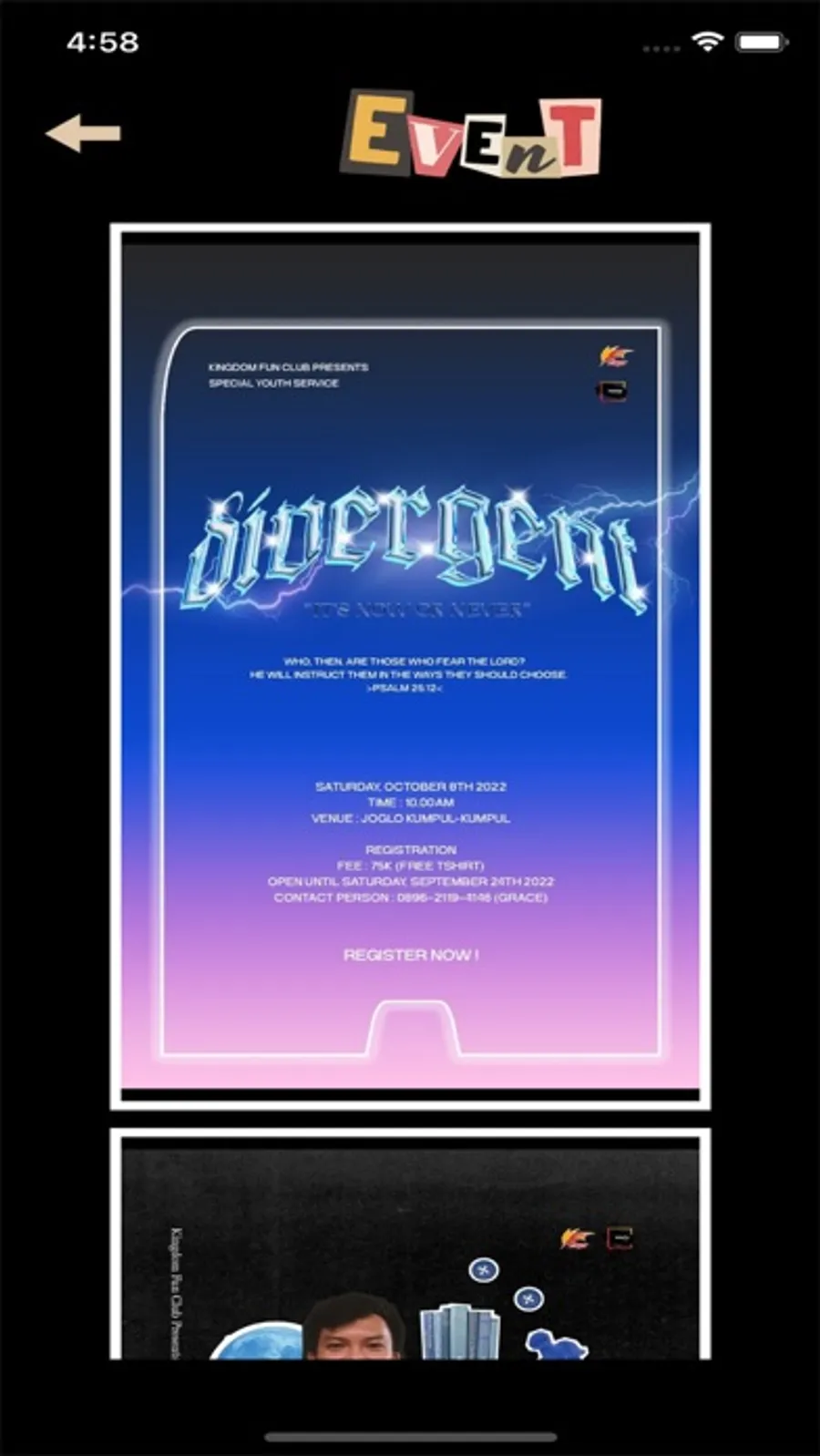 Jika kamu seorang pelajar atau mahasiswa dan usia kamu antara 15 tahun hingga 30 tahun, ayo bergabung dengan kami dalam keseruan dan keceriaan di setiap hari Sabtu malam. Jangan sia-siakan masa mudamu!