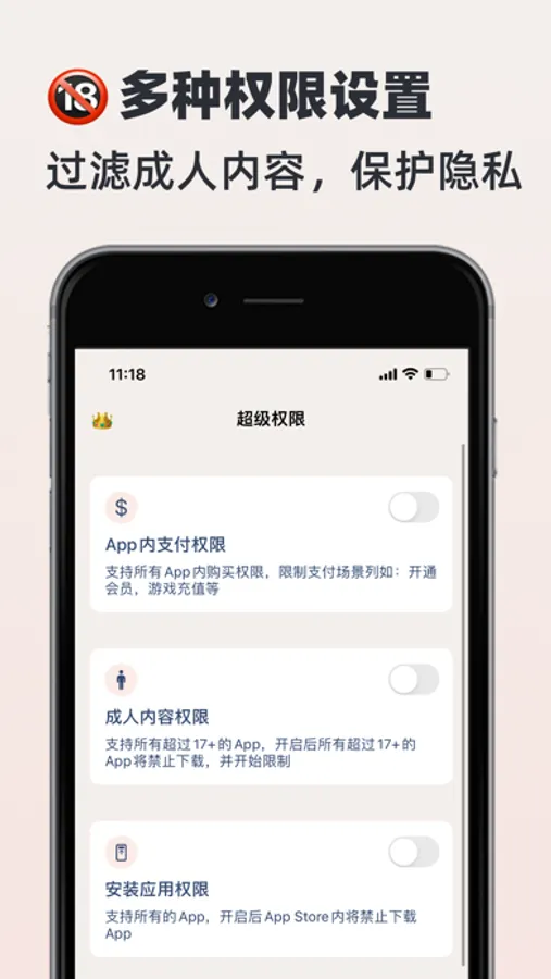 1. 完全限制应用:限制应用相应的权限,保持专注。