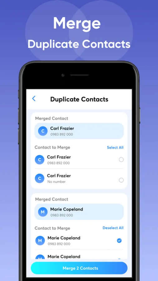 Phonekit will help you to find and merge these duplications, by allocating contacts with similar names or identical phone numbers and email addresses.