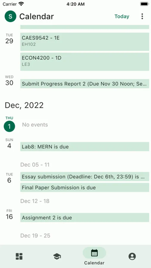 - 【日历】在日历中可以切换日,周,日程三种视图,所有课程和ddl一目了然,点击可以跳转到课程或ddl的详细信息。