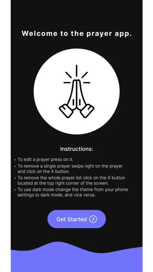 Available both in light and dark mode, this app provides an easy to use interface where it's super simple to add a prayer, remove one and to also edit one.