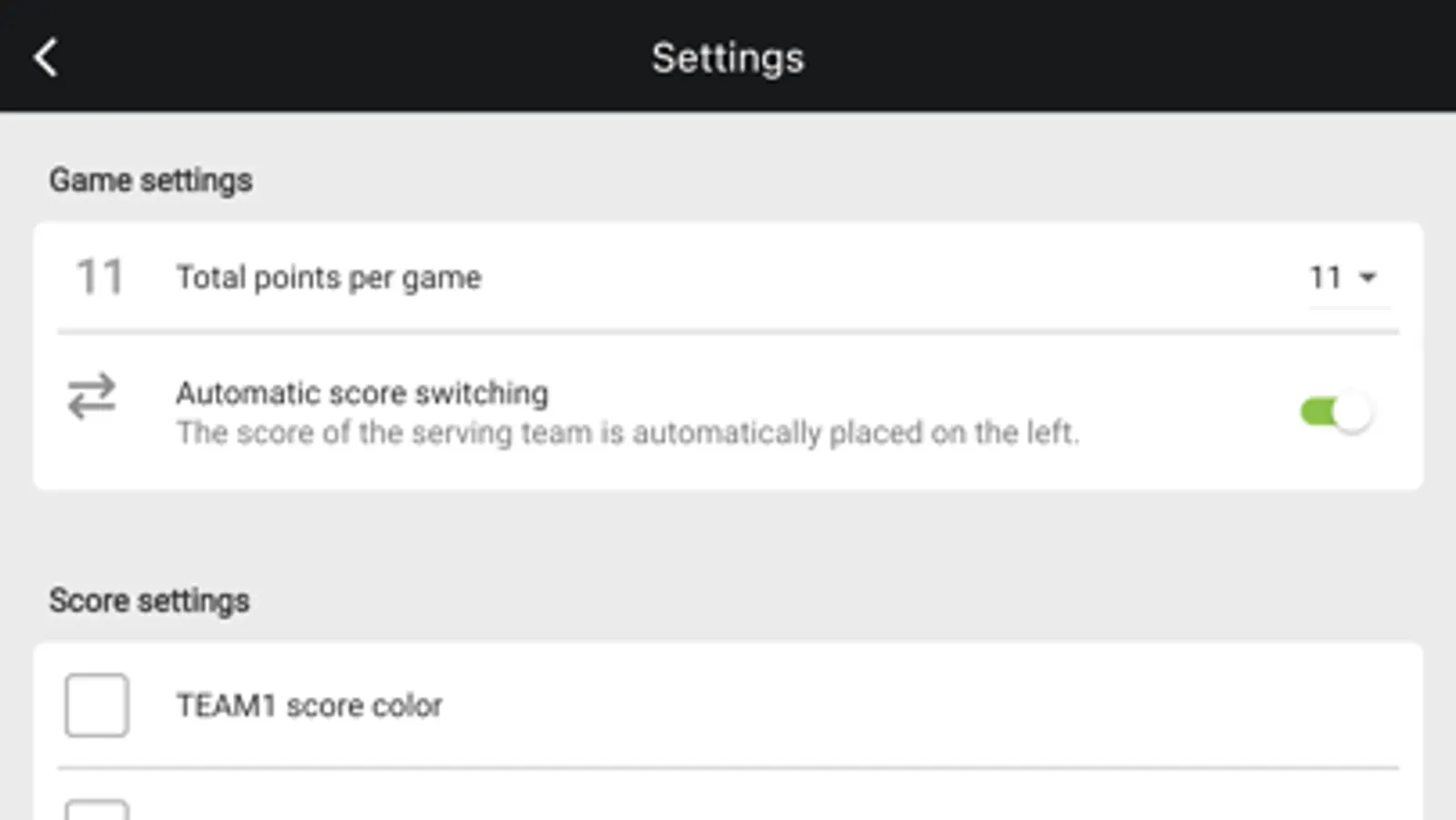 Also, the serving team and its score are automatically placed on the left side of the screen. This automatic placement can be turned off in the settings.