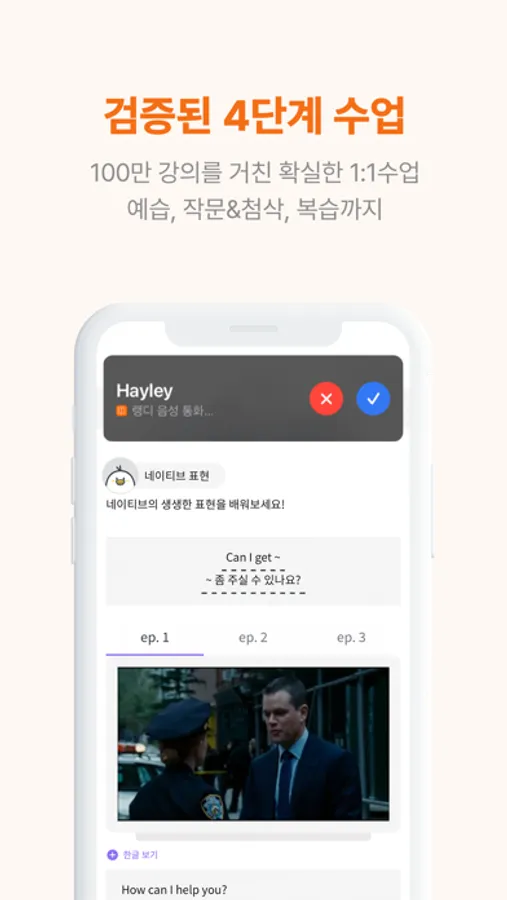 - 실용성 100% 현실 표현을 1:1로 배우고 실시간 피드백 받아요.