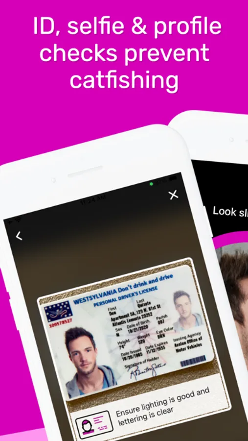 You share your driver's license to rent a car or apartment, check into a hotel, fly on a plane, see a doctor or open a bank account. Your dating life is just as important. We do not store sensitive data like your driver’s license number or physical address.