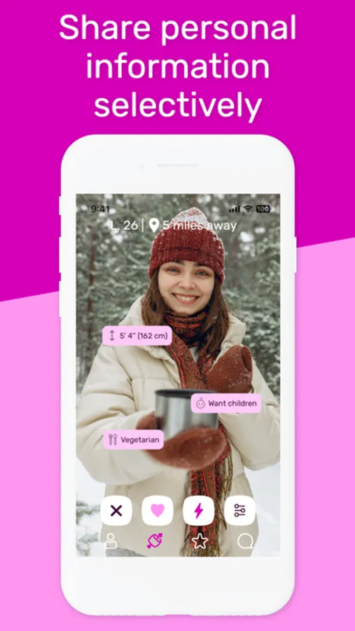 You have the option to make your religion, political preferences and other information visible only to people with the same answers. Selectively share information so you can get better matches without telling everybody everything about yourself.