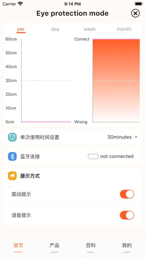 APP可以设定使用时间,在到达设定的使用时间后,瞳小护App会发出语音震动提醒。