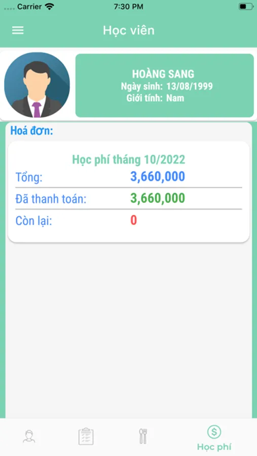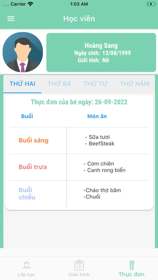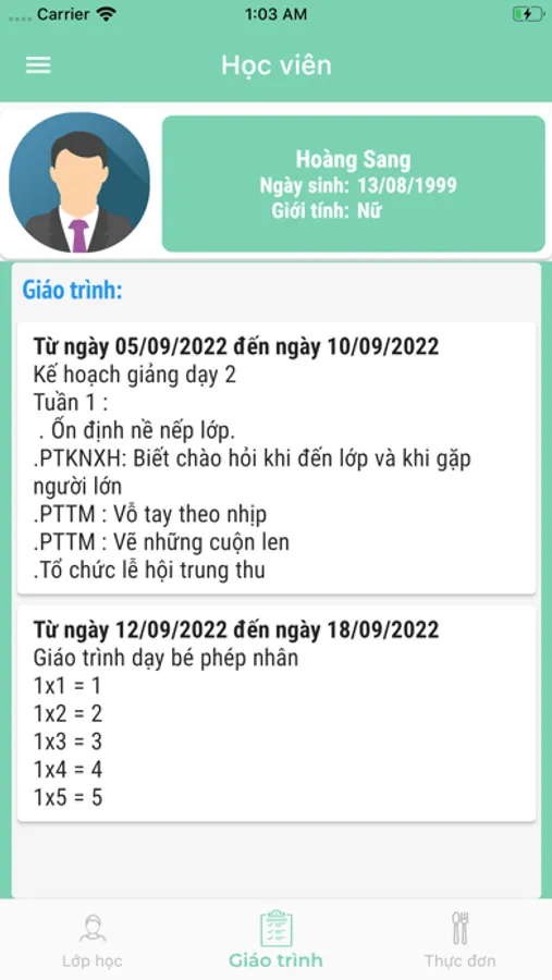 Ứng dụng giúp phụ huynh theo dõi tình hình học tập, điểm danh nhân diện gương mặt, thực đơn hàng tuần, học phí hàng tháng.