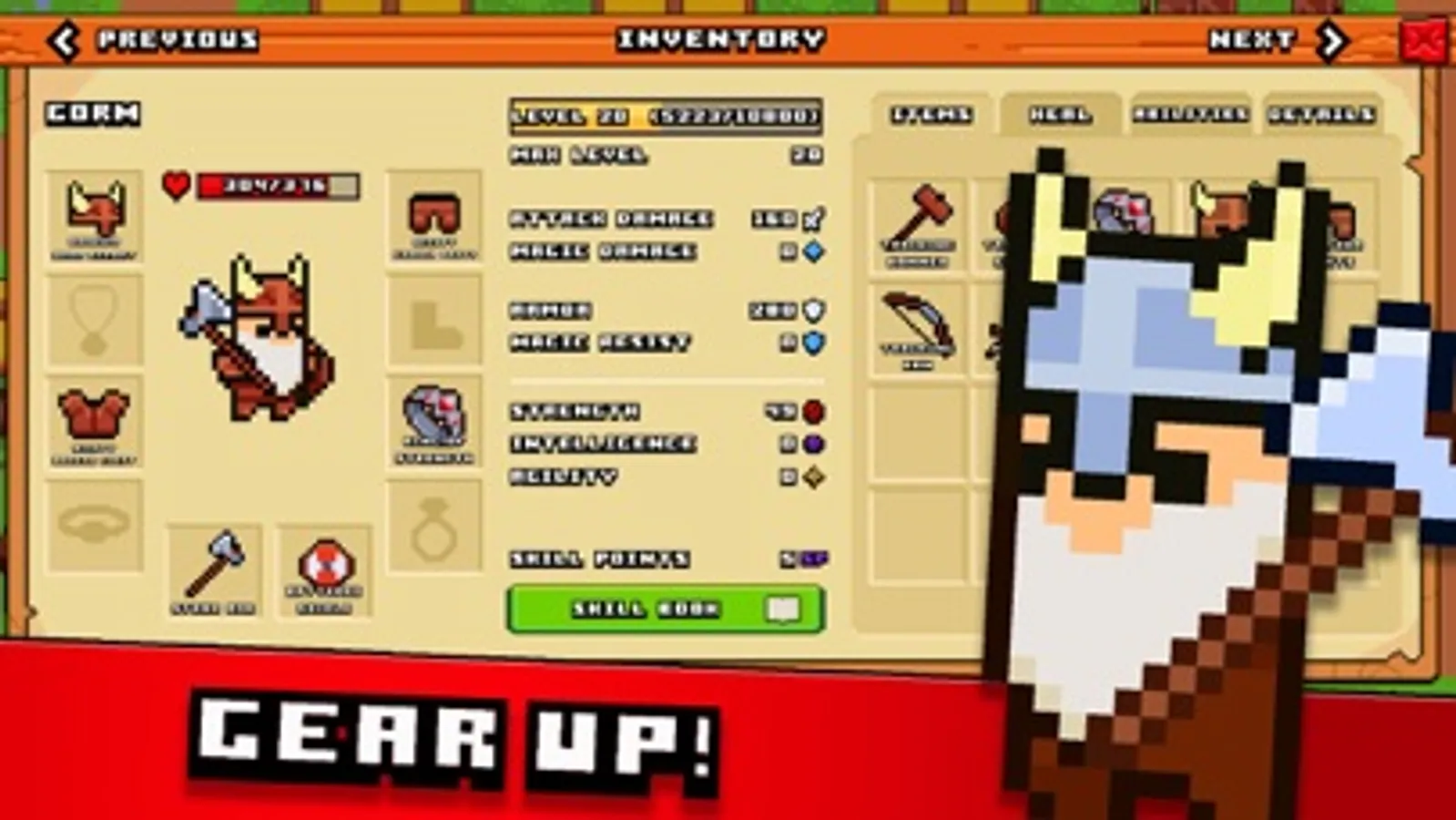 Pixel Tribe: Viking Kingdom is a strategy RPG with retro pixel art graphics where you build and upgrade a tribe of Vikings.