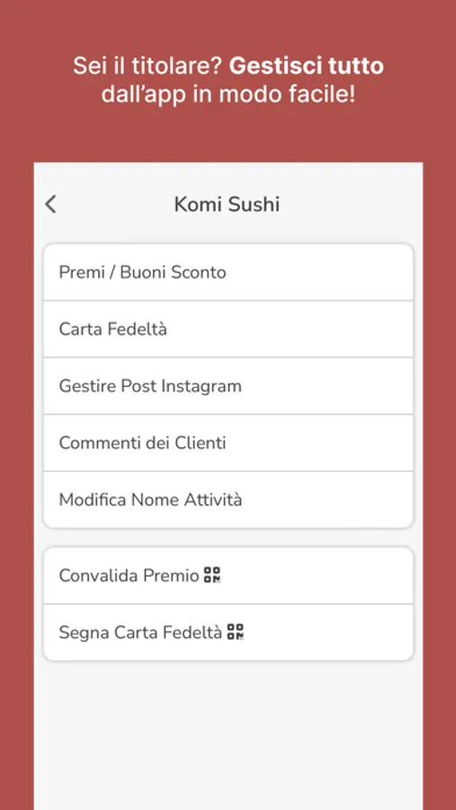 Entra in un locale, inquadra il loro QR, aggiungi la loro Carta Fedeltà. Ogni volta che la completi, ricevi uno sconto!