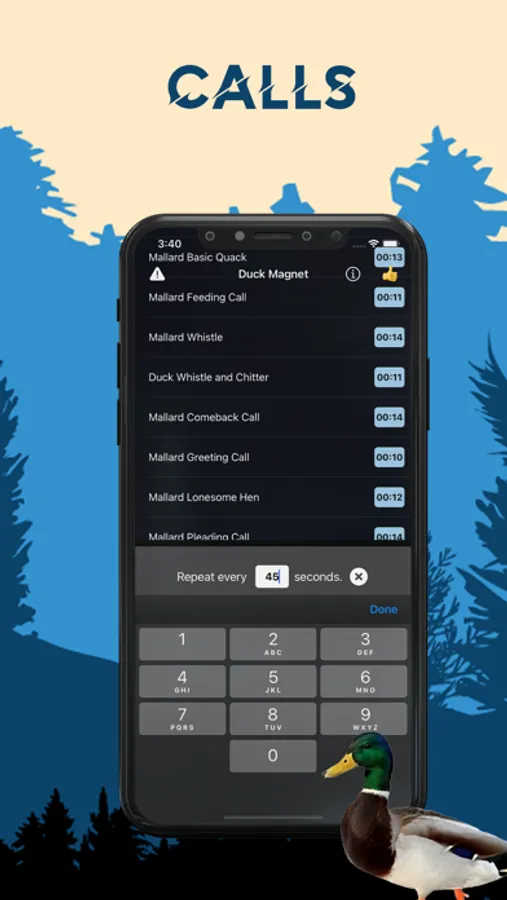 No longer do you need drag along bulky electronic goose callers. With this duck sounds and duck calls app you can simply select from a large selection of different duck sounds and play them with a Bluetooth speaker setup or connect your phone to amplified speakers.