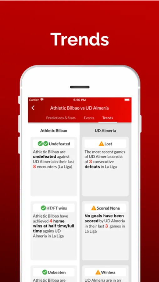 STATISTICS - User friendly displayed statistical data for each match such as league standings, team form, last played matches results, head to head statistics between the match opponents, overall accumulated stats such as average scored or conceded goals, next matches opponents difficulty level calculated by an algorithm, which analyses the teams past performance.