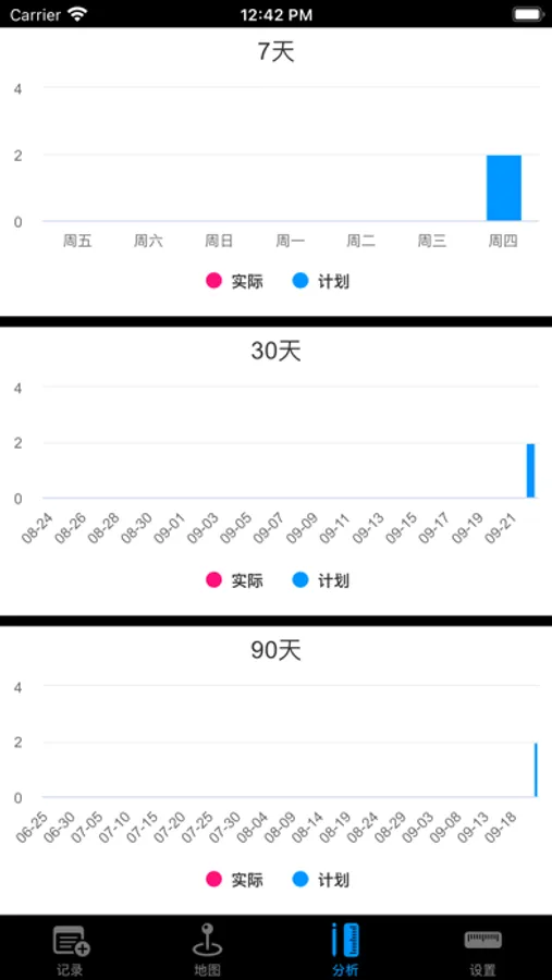 记录每天的吸烟情况,标记吸烟地点,并可按7天、30天、90天生成图表报告。