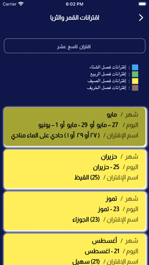 تطبيق يهتم بأسماء النجوم وتعريف دقيق لكل أسم نجم وأقترانات القمر والثريا والنجم الحالي وتعريفه ومدة كل نجم ومدة كل إقتران ومواعيد الصلاة وإتجاه القبلة