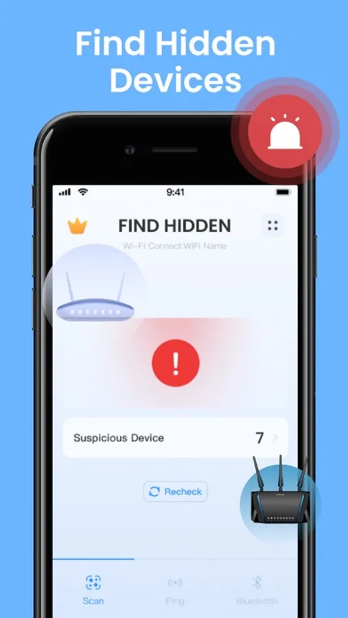 Detect all electronic devices in the network environment, updating in real-time as you move around so as to protect your privacy and security when you move to a new home, travel on business, or go on honeymoon.