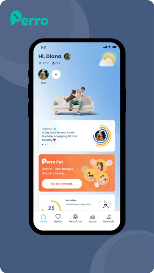 "The Perro app is designed to help you improve your dog’s wellbeing, as well as improving the physical and mental health of pet parents just like you!