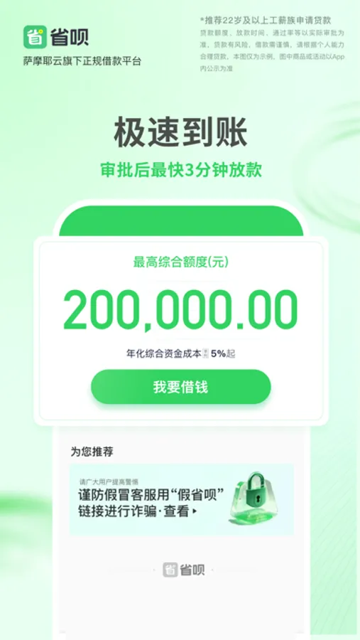 2、闪电放款告别等待:省呗智能机审模式,极速审核,快至3分钟放款;