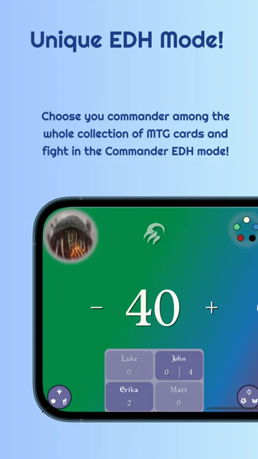 • Save your profiles (saving avatar, deck colors and landscape, and commanders)