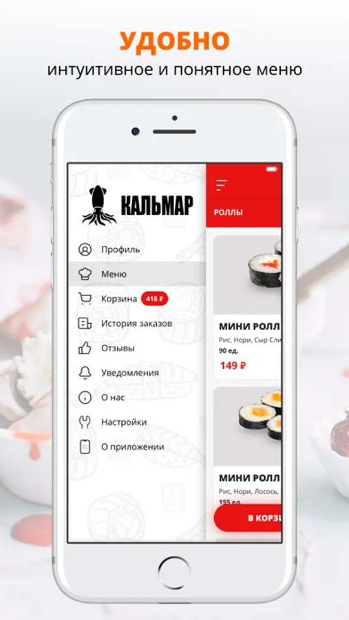 Воспользуйтесь удобным приложением для заказа еды «Кальмар».