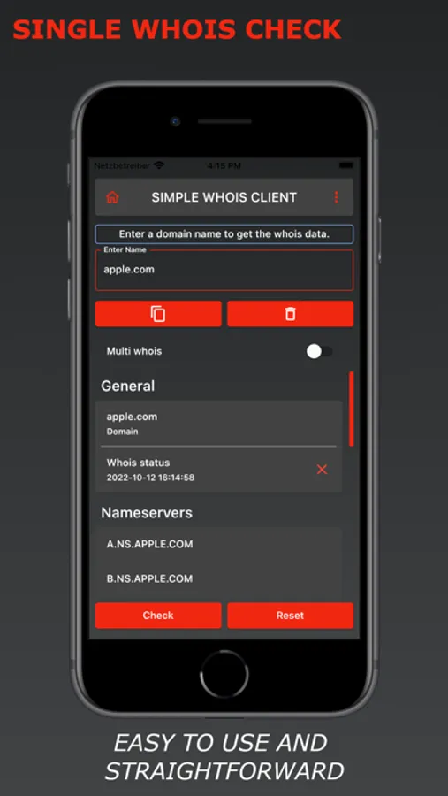 Simple Whois Client offers you an easy way to check the Whois status of one or more domains.