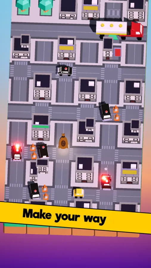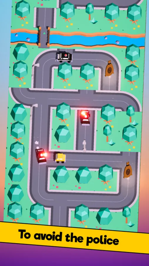 Try to find the best path to collect more money and avoid the police cars chasing you.