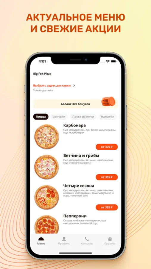 Мобильное приложение Big Fox — это быстрый и удобный способ заказать горячую, ароматную, вкусную пиццу.