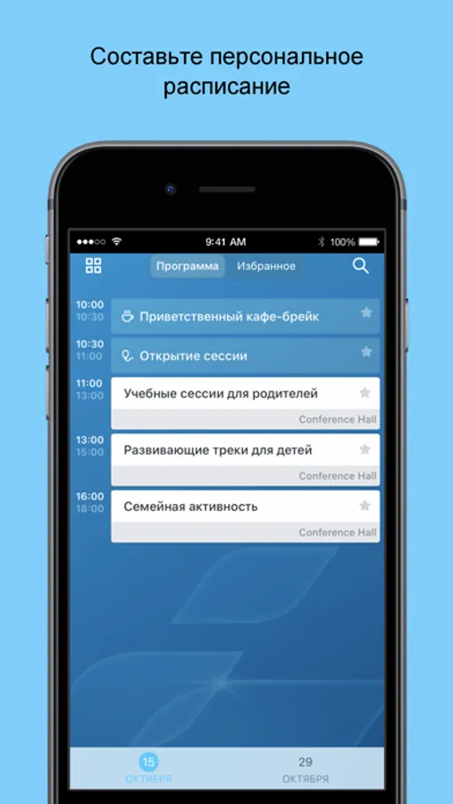 - следить за обновлением расписания мероприятий в режиме реального времени;