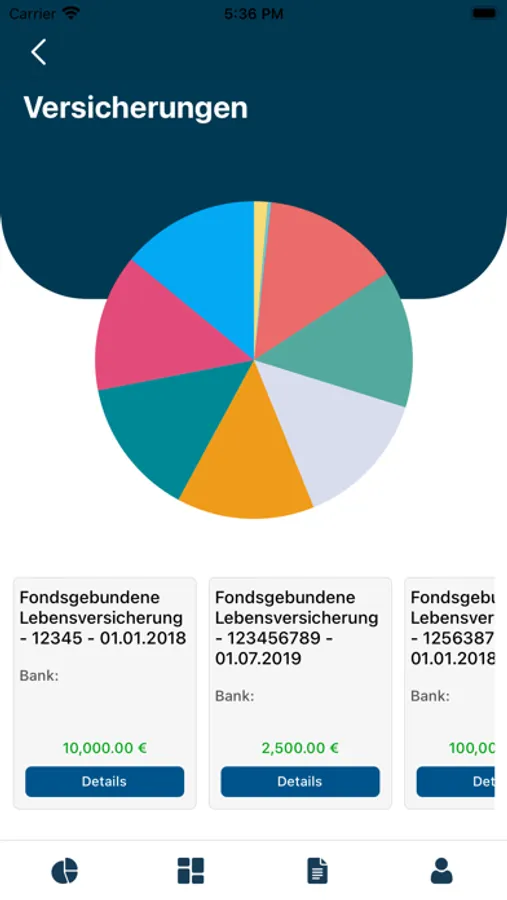 Überblicke deinen Vermögensstatus und deine Vermögensarten. Vertragslaufzeiten, -nummern, -prämien kannst du einfach einsehen. Finde deine Dokumenten einfach und bequem – angefangen von der Geburtsurkunde, über den Arbeitsvertrag und Finanzunterlagen, bis hin zur Patientenverfügung, Vollmachten, Erbschaftsregularien, und alles was dir sonst wichtig ist.