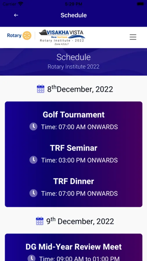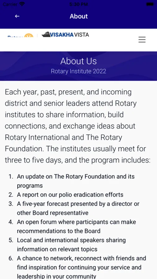 Visakha Vista app is an exclusive app for Rotary Institute 2022 happening at Visakhapatnam from 8th Dec 2022 to 11th Dec 2022.