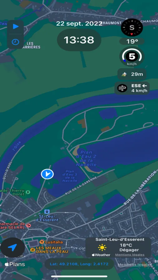 Cette application vous donne en temps réel : la vitesse, la direction via la carte et la boussole, la météo, la force et la direction du vent, la position gps précise que vous pouvez copier / coller facilement.