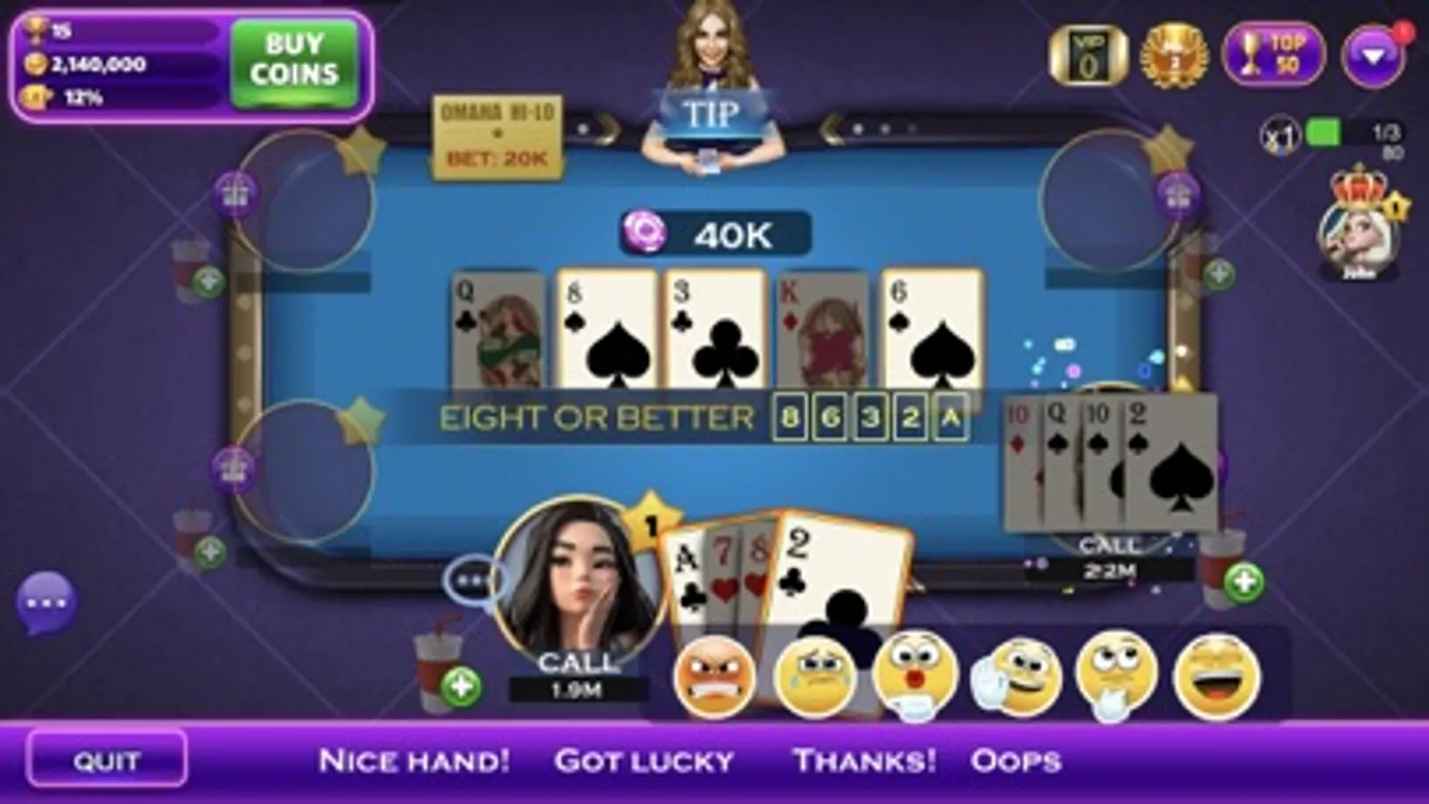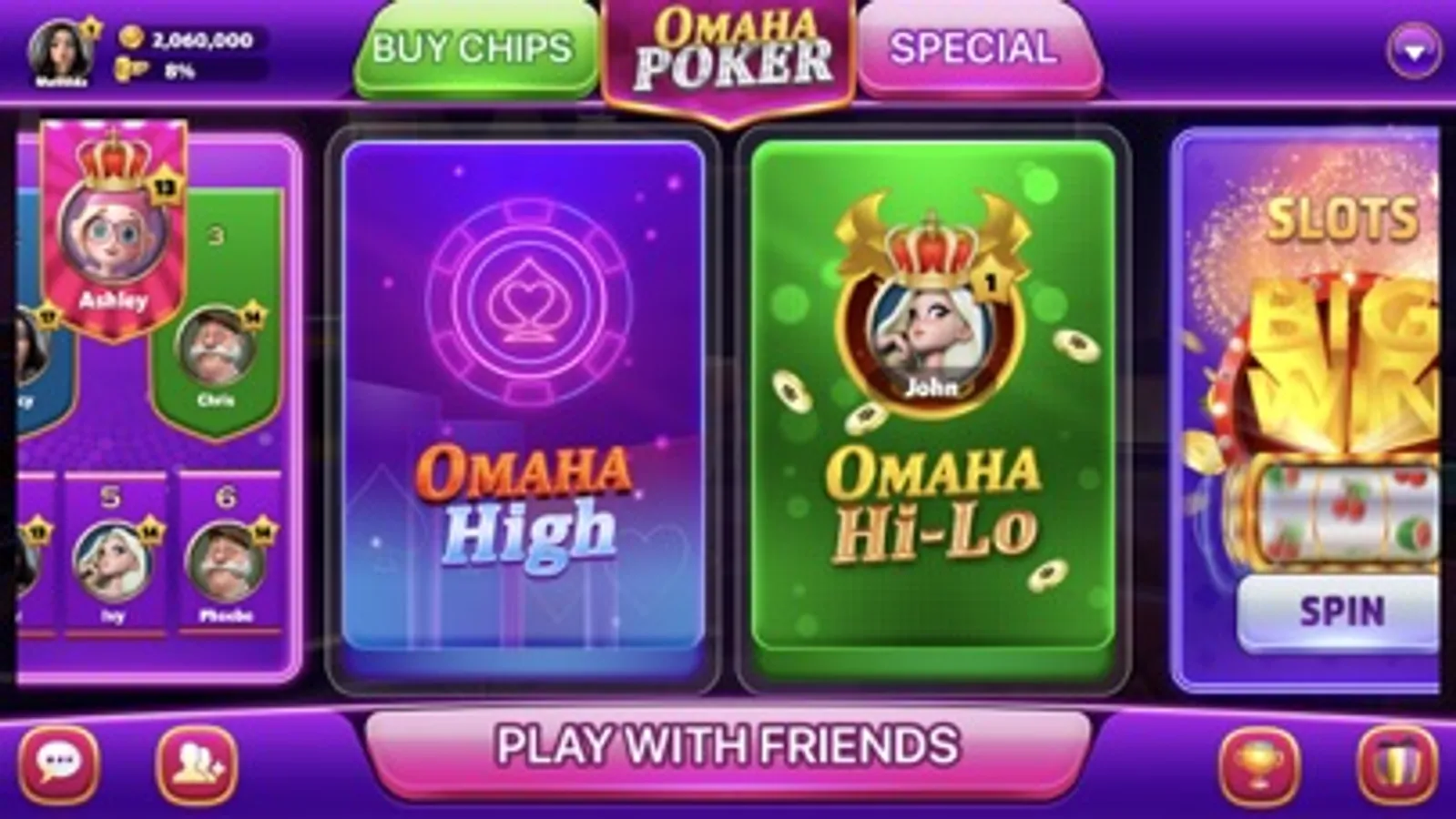 Omaha Poker is the destination for social casino players and table poker players. If you’re a fan of the Las Vegas casino experience, Omaha Poker is your home for more awesome poker tables, daily poker card bonuses, poker game modes, and more! Experience this Omaha Poker game free online!