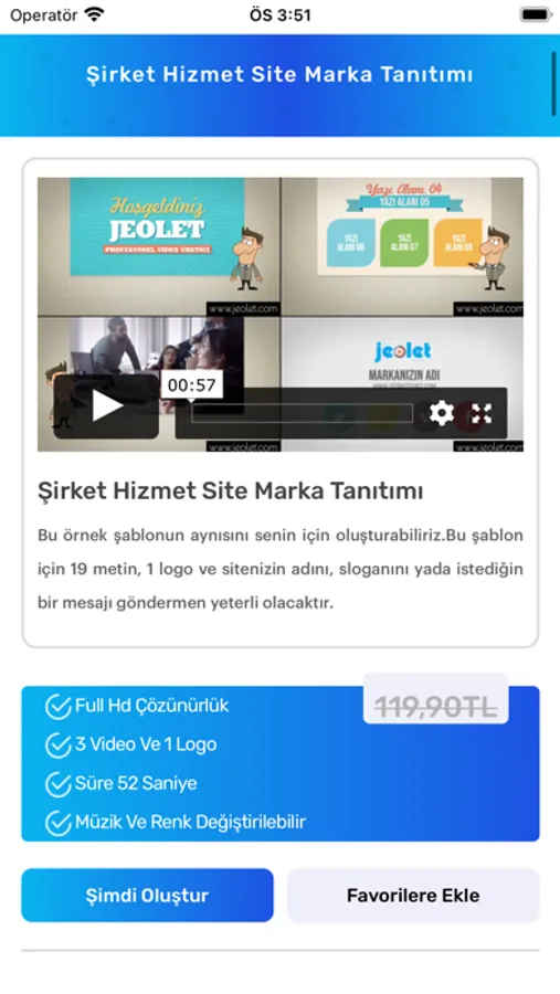 Ürün Ve Hizmetlerini Profesyonel Bir Görsellikle Tanıtacak Videolara Mı Ihtiyacınız Var? Artık Profesyonel Video Ve Animasyonlara Sahip Olmak Için Tasarım Alanında Uzman Olmak Zorunda Değilsiniz. Jeolet Ile Örnek Video Şablonları Üzerinden Kendi Görsellerinizi, Videolarınızı Ve Yazılarınızı Ekleyerek Profesyonel Videolara Sahip Olabilirsiniz. Jeolet'in Sağlamış Olduğu "Şimdi Oluştur" Seçeneği Ile Marka Ve Ürün Tanıtımları, Özel Gün Videoları, Logo Animasyonları, Slayt Gösterileri, İnstagram Hikayeleri ve Intro Gibi Farklı Video Formatlarından Yararlanabilirsiniz.