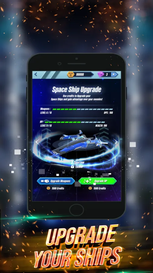 The whole planet Earth hopes for your heroism! You are given the opportunity to choose your combat spaceship and repel alien swarms. Before you is not the easiest task to protect the universe from evil enemies. This intergalactic war will put you in a lot of challenges against space bosses in a dangerous environment. Your every victory is important for the planet and all of humanity, so you will have the opportunity to choose a ship and improve its weapons. You will be given a large selection of spaceships, a variety of weapons and the improvement of each of them so that you can show the world your deadly power.
