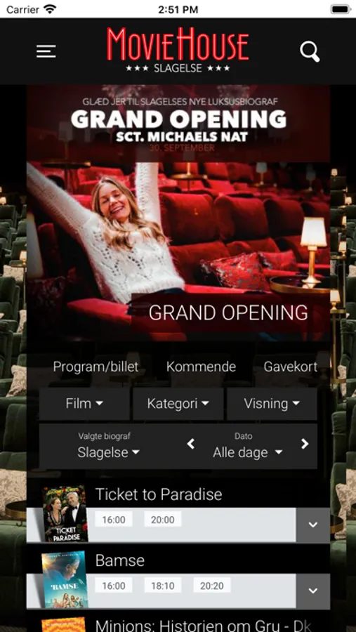 Film og program for biografen i MovieHouse Slagelse. Se biografens program, filmomtaler, trailers, etc. Køb billetter til biografen der leveres direkte til din telefon. Du behøves ikke have besvær med at starte din PC eller udskrive dine billetter – enklere bliver det ikke. Du kan gå direkte til salen og blot vise kontrolløren din telefon.