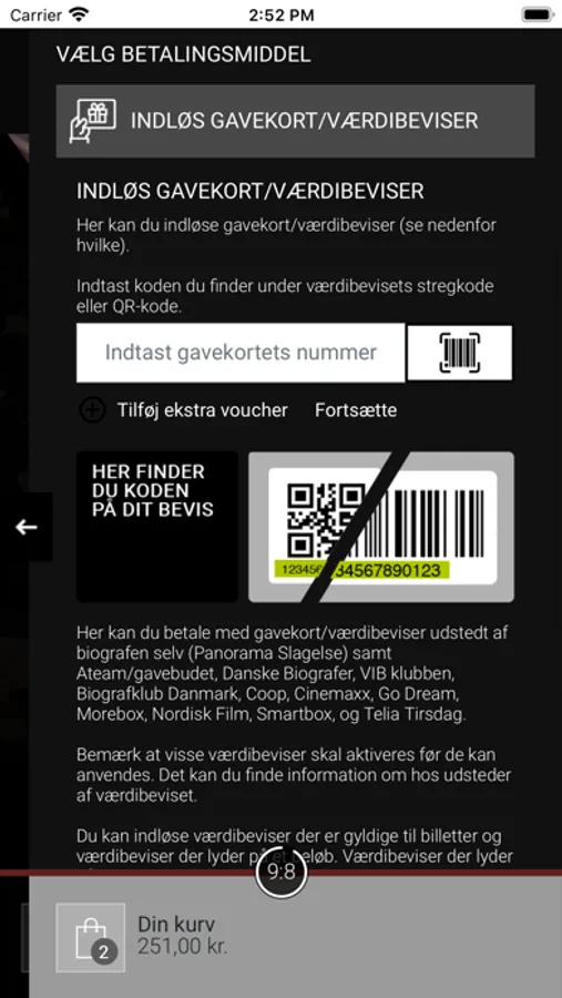Du kan også købe varer i kiosken. Dit køb leveres som værdikuponer til din telefon – varerne får du udleveret ved at fremvise din telefon i vores ’fast lane’ der kun er for brugerne af vores app.