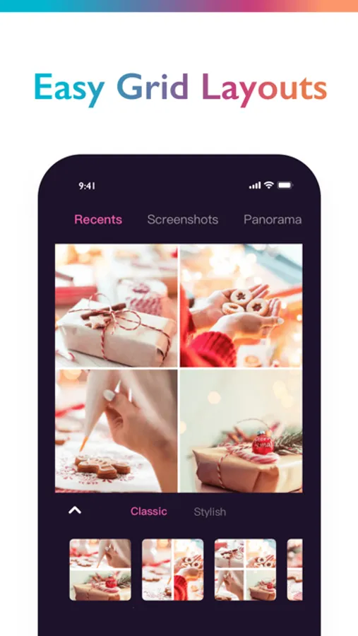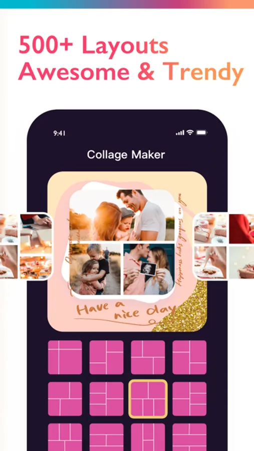 - Thousands of customizable Collages, Grids and unique Layouts.