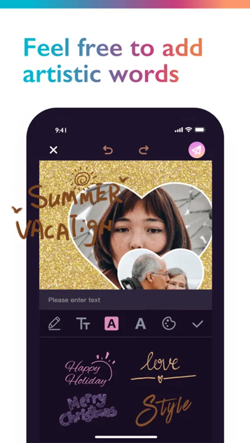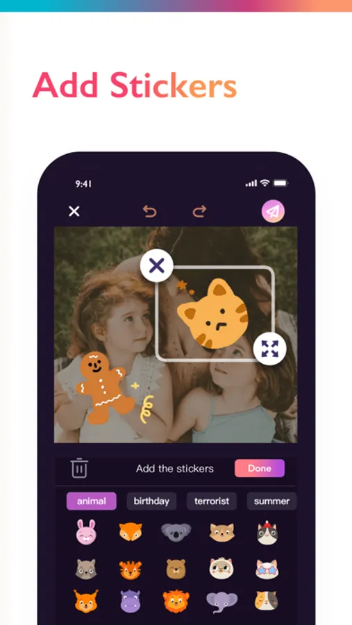 • Decorate your images and collages by adding trendy and occasion-specific stickers.